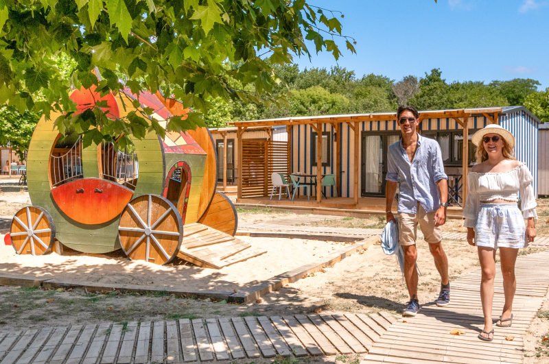 Ce camping propose une gamme d’hébergements allant des mobil-homes aux cottages PREMIUM en passant par les écolodges, tous dotés d’une terrasse en bois semi-couverte et d'une télévision.